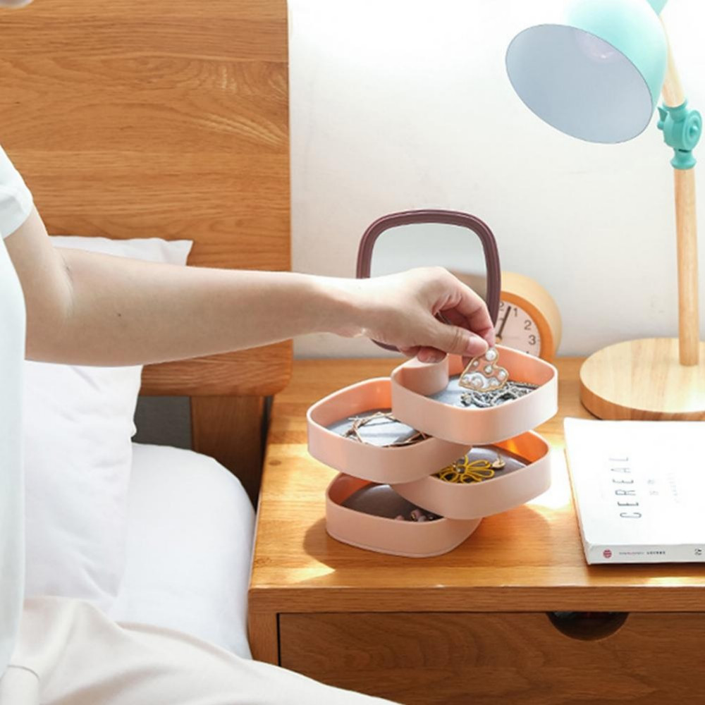 Jewelry Box With Mirror Rotatable Large Capacity Four Layer Stackable ABS Durable Storage Jewelry Organizer for Home