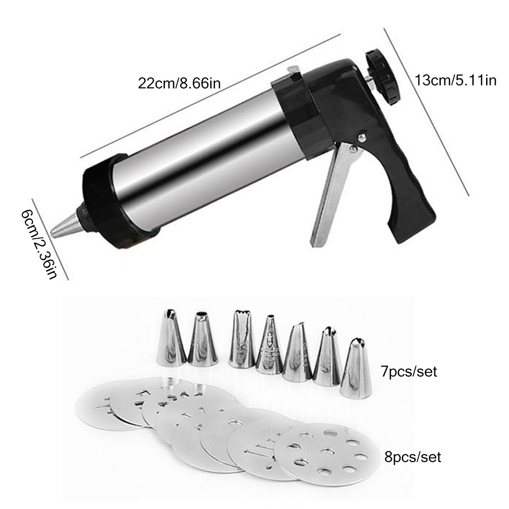 Use: Simply fill the gun with cookie dough, choose and fit a disc then press