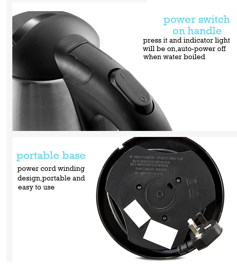2L Good Quality Stainless Steel Electric Automatic Cut Off Jug Kettle