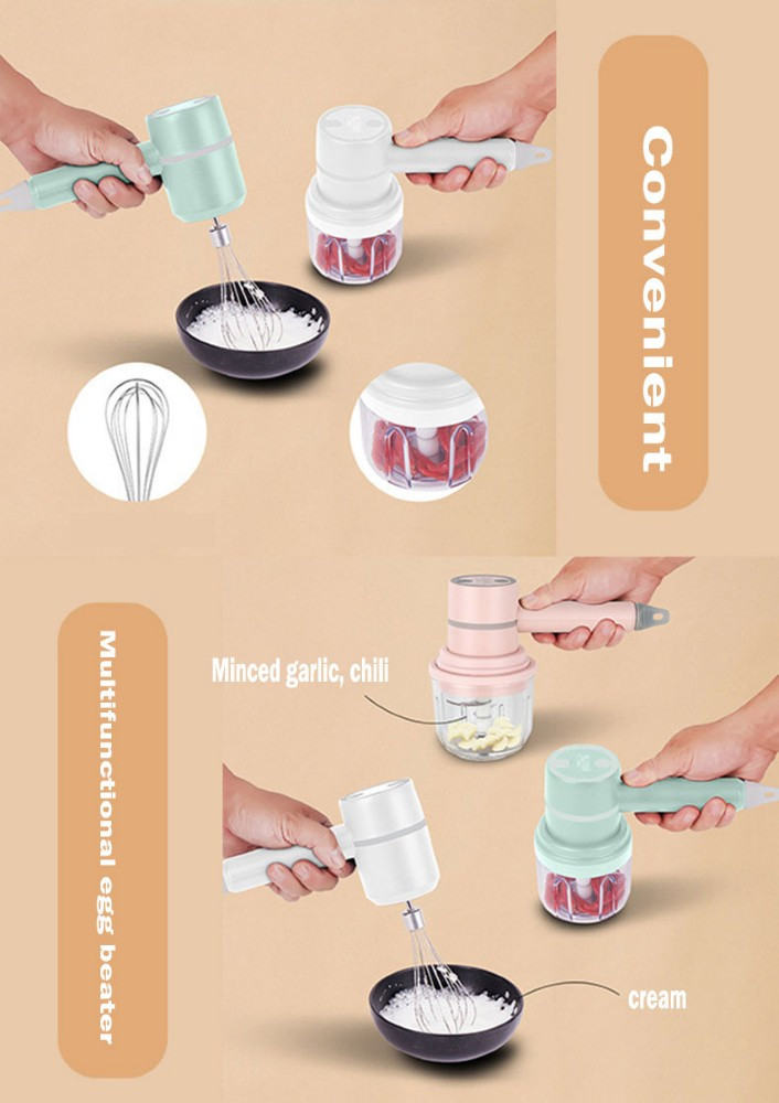 USB 2 In 1 Wireless Electric Garlic Chopper Masher Whisk Egg Beater 3-Speed Control with 2 Mixing Rods Kitchen Handheld Frother |